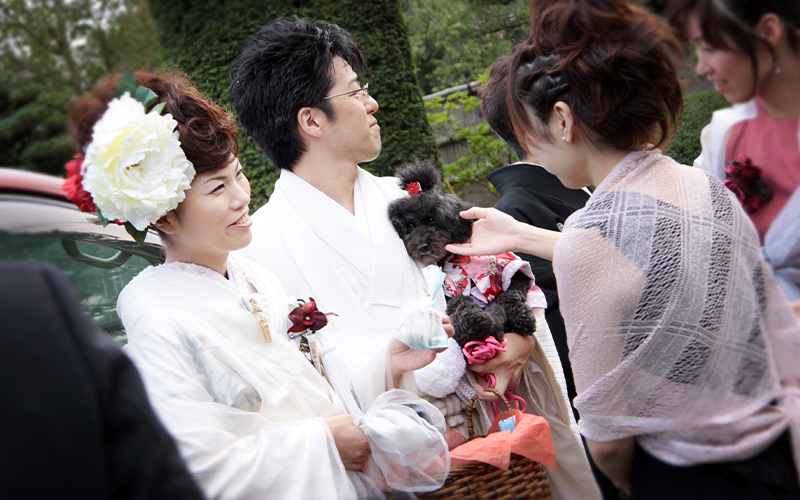 大切な家族の一員である愛犬と一緒に挙式ができるのも、当店ならではの魅力。