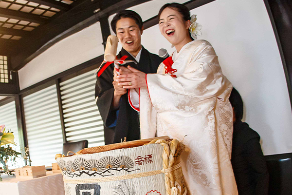 雅楽の生演奏が響くなか、厳かな雰囲気に包まれた誓いのひとときをお過ごしいただけます。
